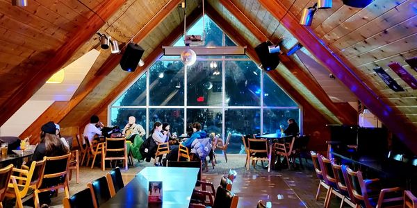 Le bar de la station de ski (montré sur la photo) est une belle place pour partager un verre en hiver après une descente.